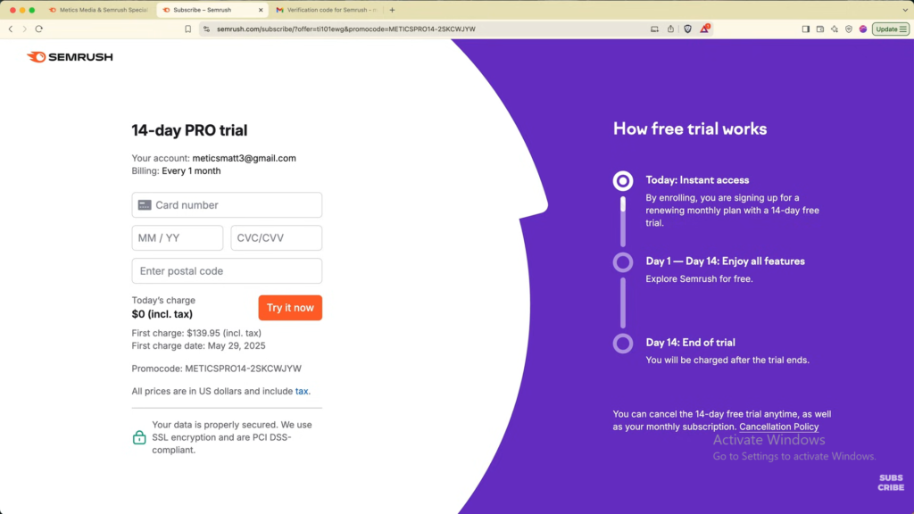 | Free Trial | ❌ No free trial | ✅ 7-day free trial | SEMrush |