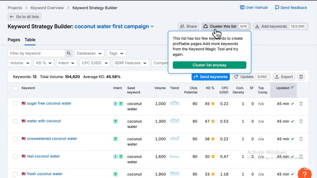 | Keyword Grouping | Basic clustering available | Advanced keyword clustering and grouping | SEMrush |