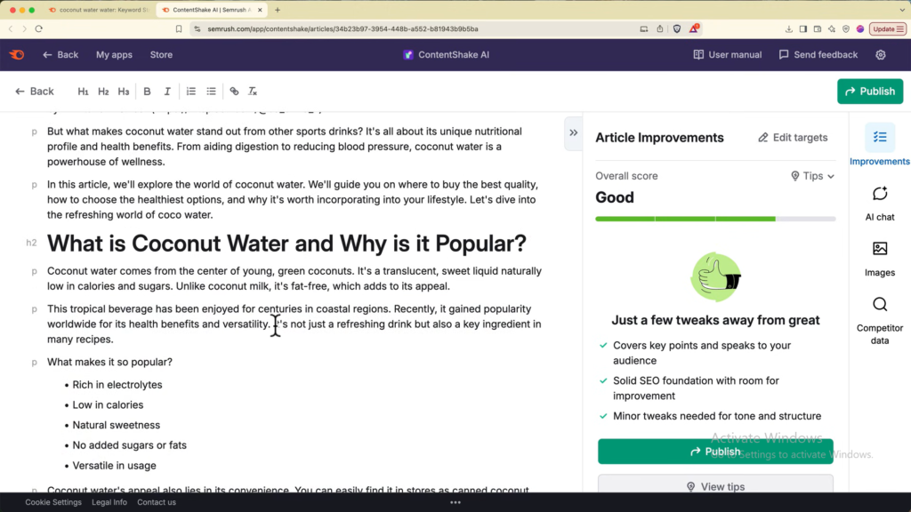 | Content Tools | Basic | ✅ Writing assistant | SEMrush |