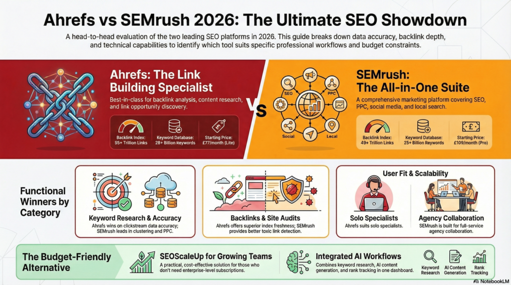 | Primary Strength | Backlink Analysis & Link Building | All-in-One Marketing Suite |