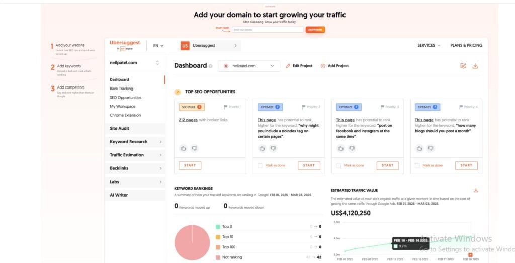 Ubersuggest is a simple and affordable SEO tool that helps you grow your website traffic.